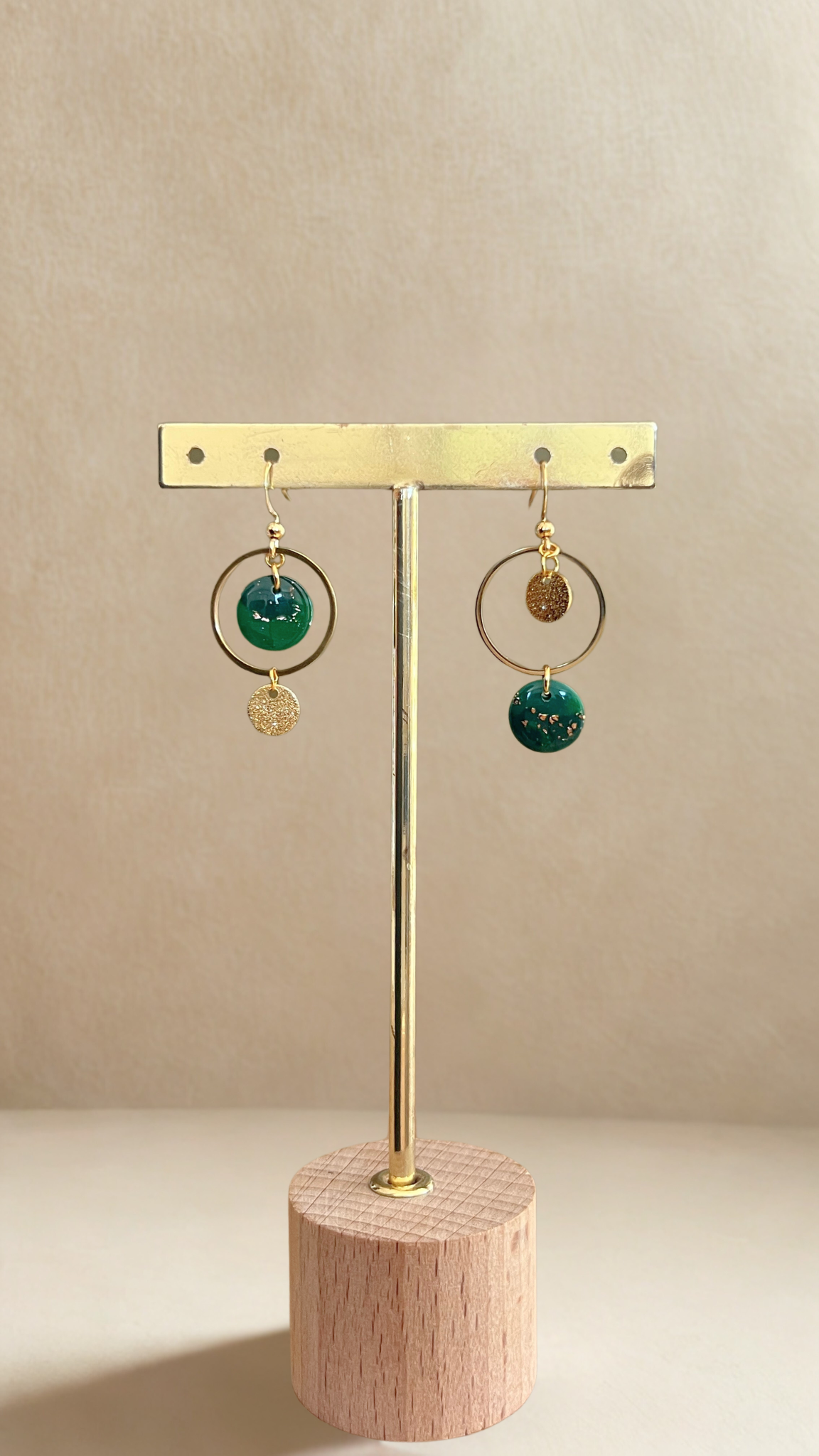 Boucles d'oreilles asymétriques Iris - coloris vert foncé