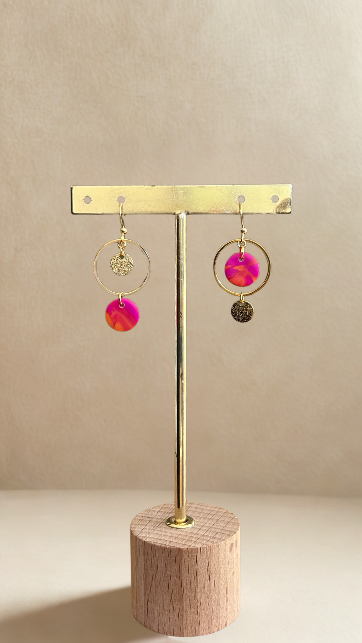 Boucles d'oreilles asymétriques Iris - coloris fuchsia et orange